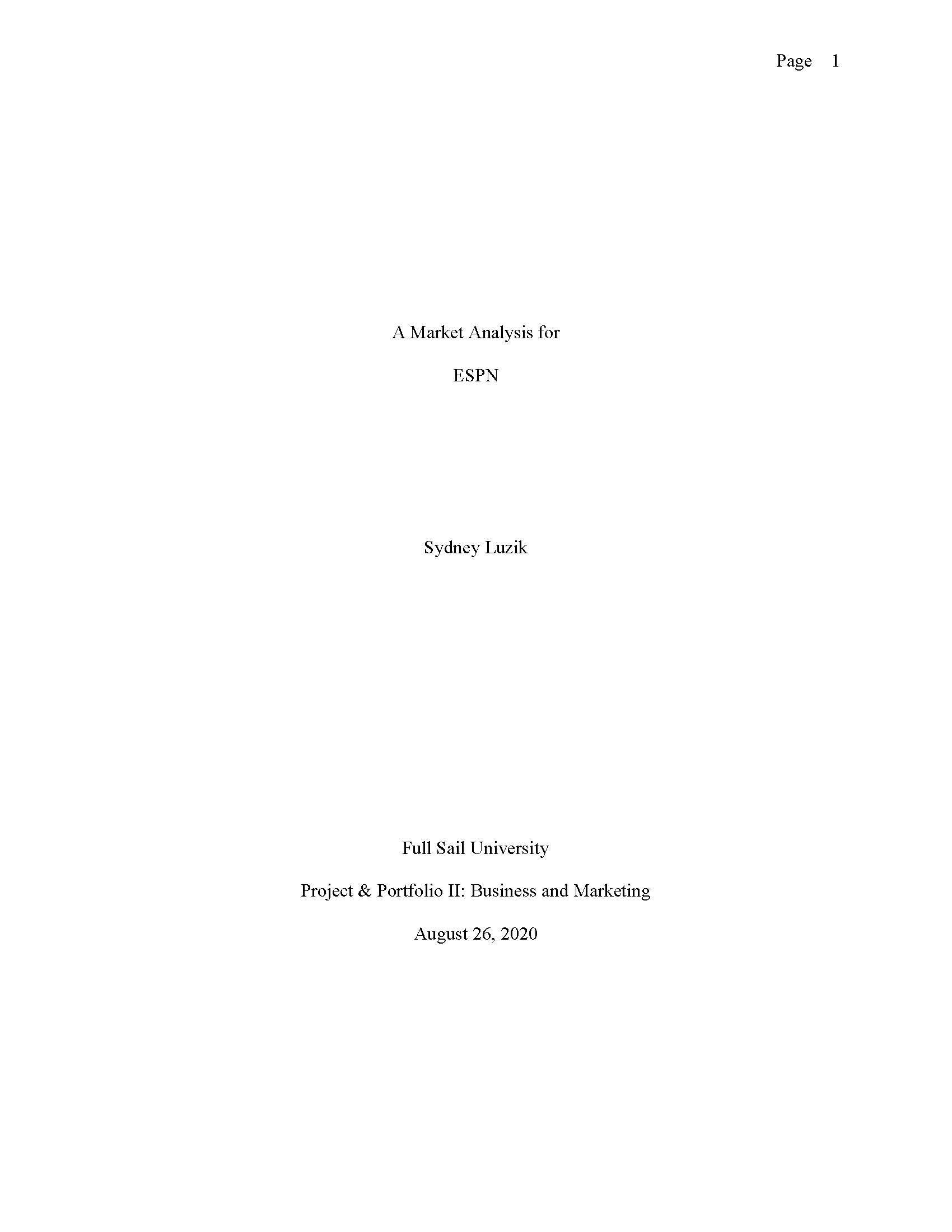 In Project and Portfolio 2 I was tasked with conducting my own marketing analysis report for ESPN. Below is my report.